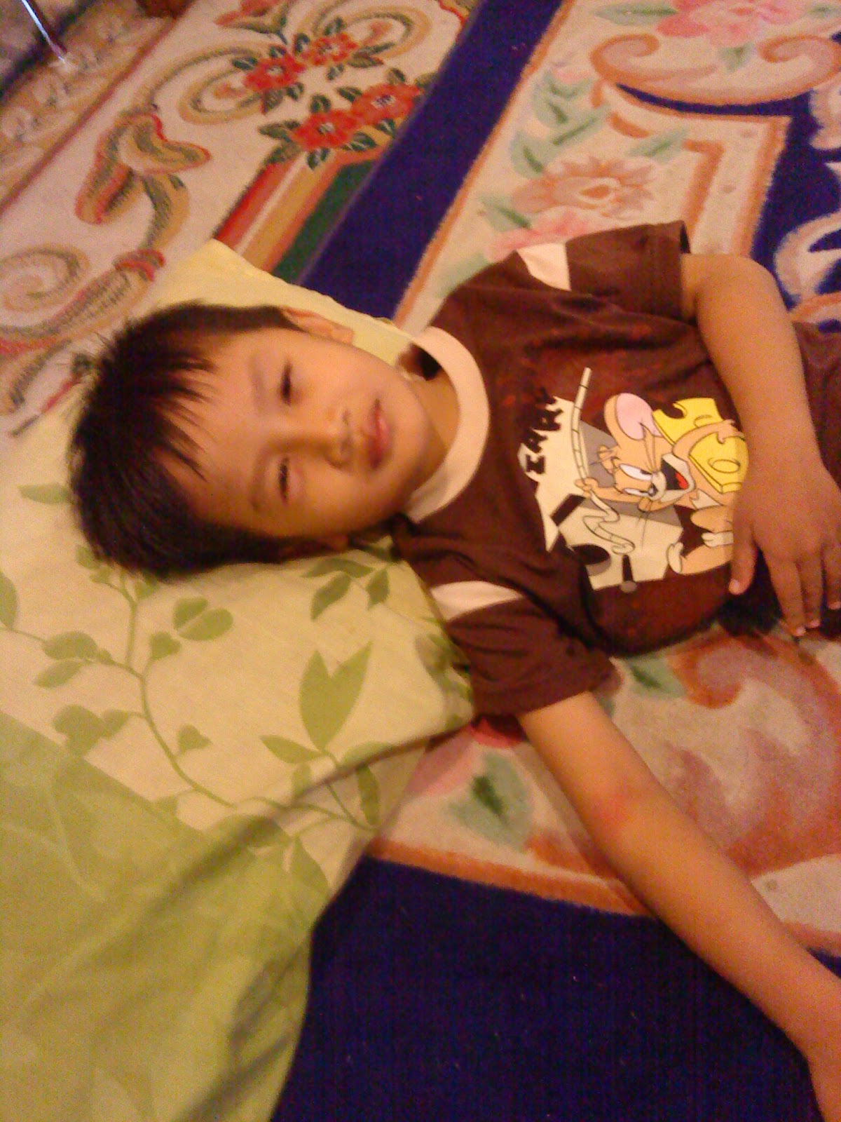 | Gambar candid baru kejap tadi. Nak kata candid tu tak lah. Dia posing gak sebetulnya. Posing mengada buat buat tido. Kecik kecik dah camwhore == |